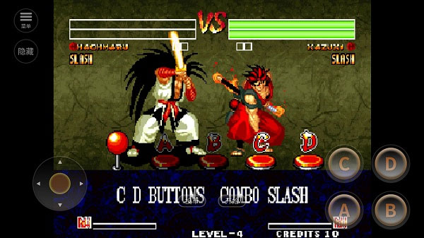 1、基本键位: A:轻斩(威力较弱、但速度较快); B:中斩(威力较强、速度较慢); C:重斩(威力最强、速度最慢); D:踢(威力最弱、速度最快)。