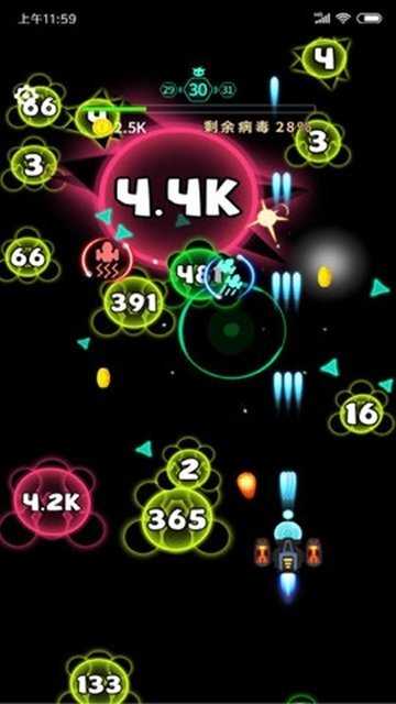 凭借强劲火力展开自由扫射,将所有病毒彻底粉碎;