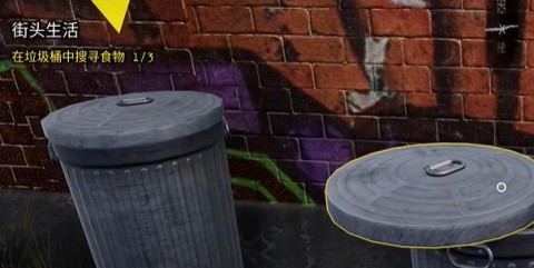 1、刚进入游戏,第一步要完成街头生活章,在垃圾桶里寻找食物。