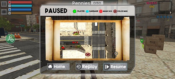 2. 操作极为简便,用脚踹击垃圾桶,连续踹三个垃圾桶后,就会掉落苹果与菜渣。