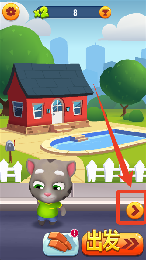 1起初,我们仅有一只汤姆猫。进入主界面后,能瞧见右下方存在一个箭头按钮,点击该按钮即可前往。