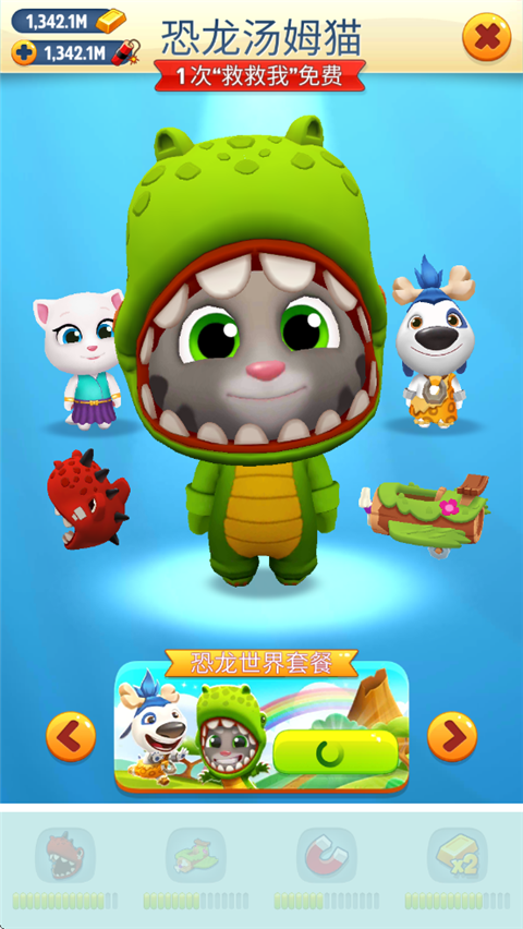 3、当解锁第二个场景后,我们便能点击汤姆猫,前往更换角色的界面。