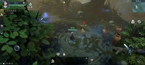 片头渡劫失败后,我们会轮回至北冥山。和多数游戏相同,任务 NPC 头上始终有个红色问号,直接与之交互就行。