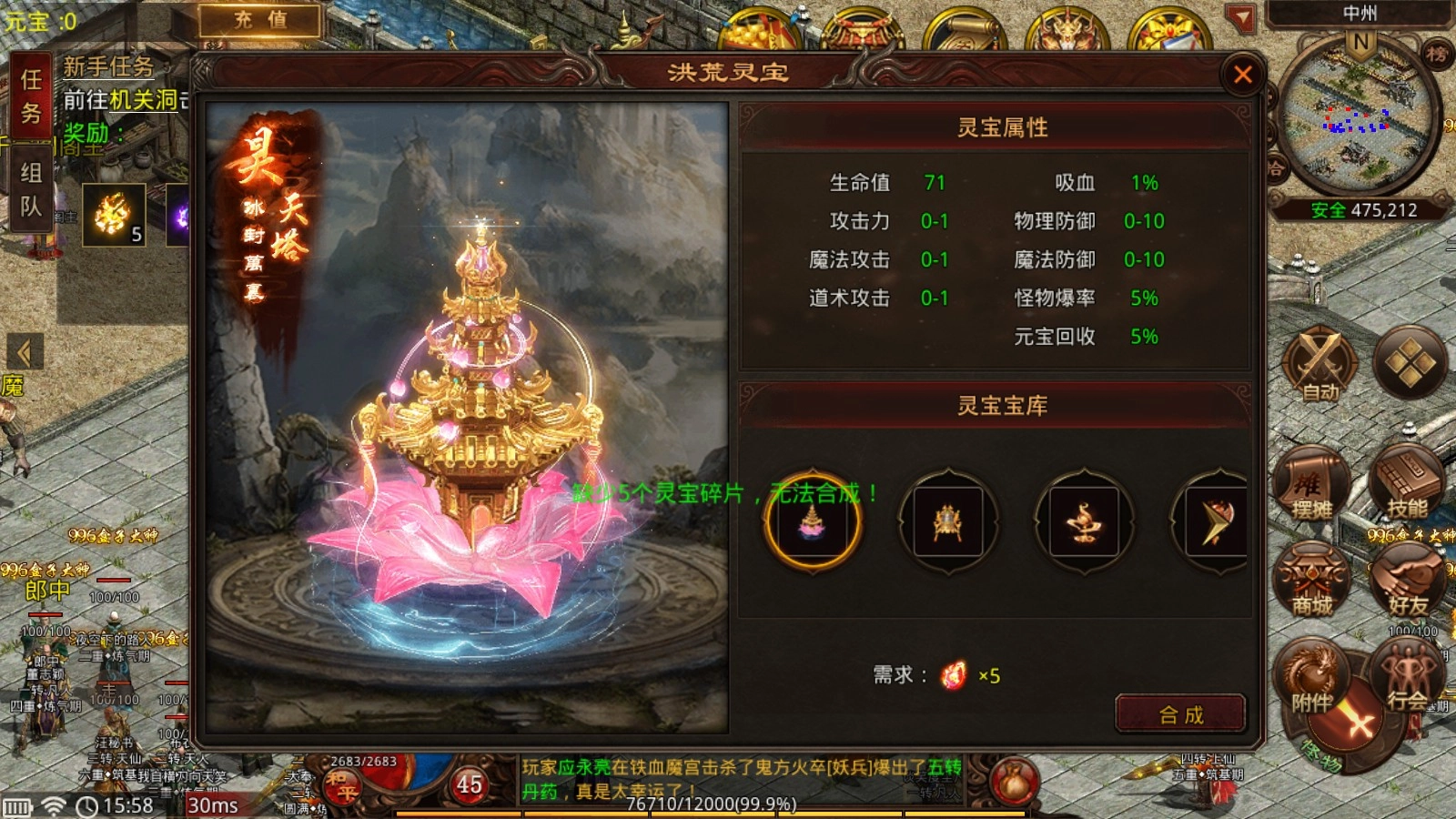 洪荒灵宝:消耗灵宝碎片可合成各类洪荒灵宝,这些灵宝能为你带来十分全面的属性增益,其中最关键的便是具备爆率加成效果!
