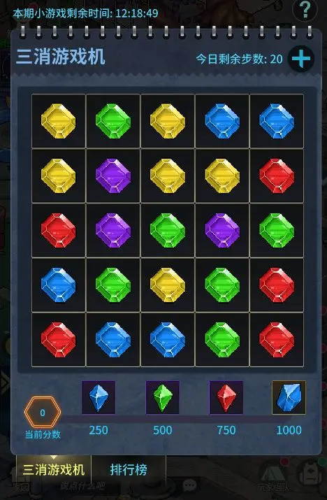 连连三消小游戏,玩游戏能累计积分,等积分攒到一定数量,就能领取高级宝石啦。