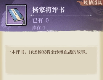 进入购买界面后,除了常规的防具和道具,仔细浏览你会发现一本《杨家将评书》。