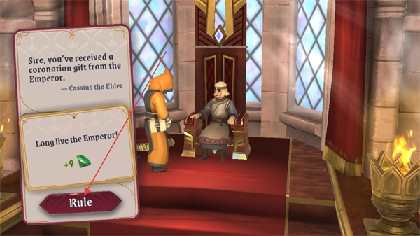 回复“LonglivetheEmperor”后,领取对应的宝石奖励,接着点击Rule按钮,继续推进游戏里与统治相关的流程。