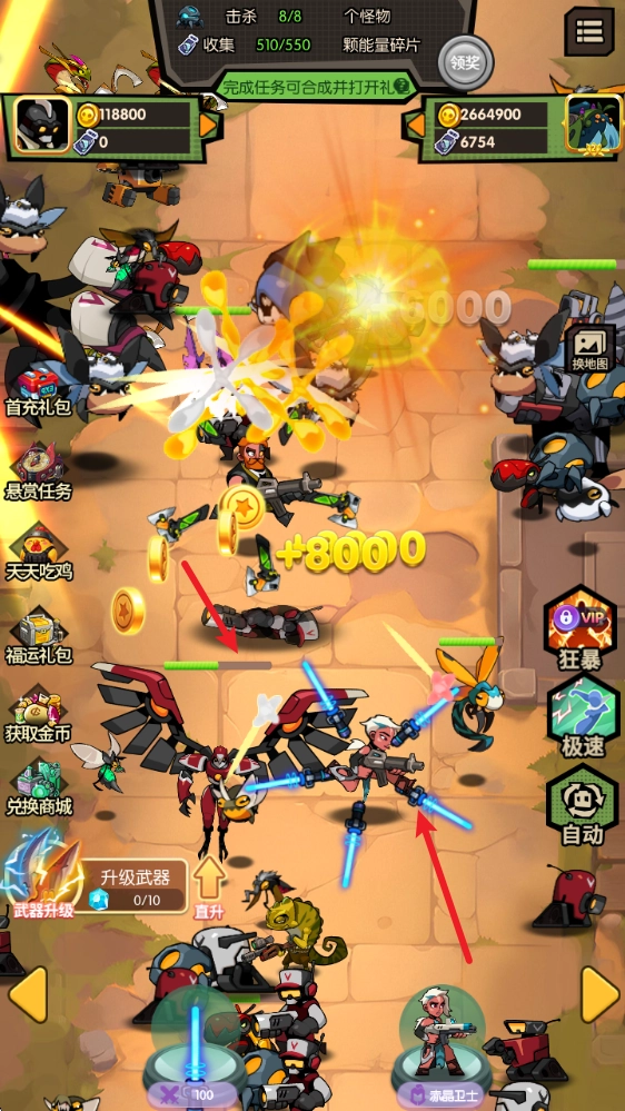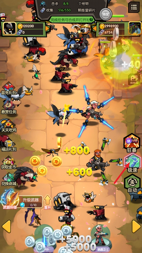 右侧还可以开启极速功能,助力你更快速地移动,消灭更多怪物。