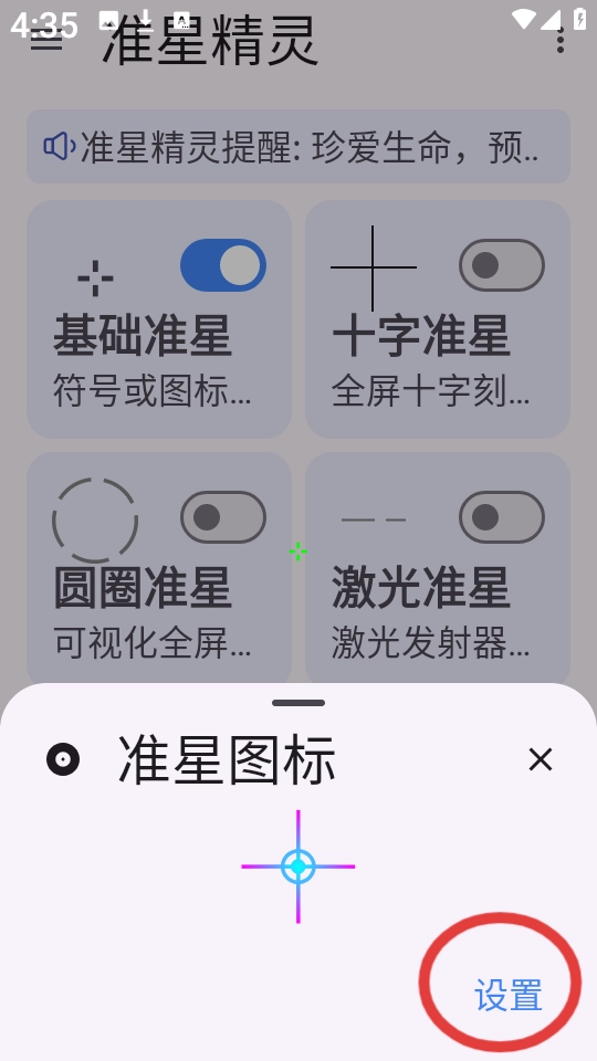任意选择一个喜欢的准星图标,直接点击“设置”。