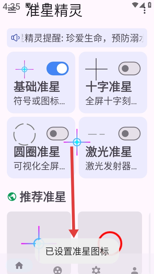 然后界面上就会出现“已设置准星图标”的提示了。