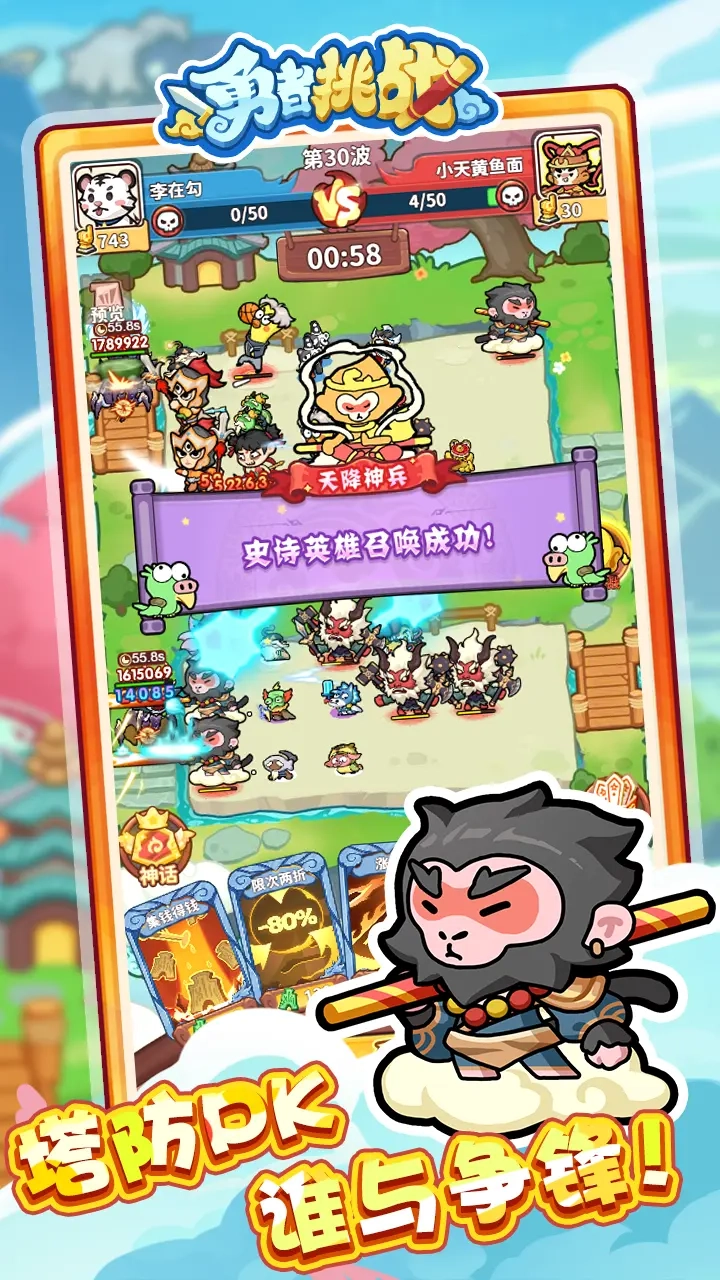 勇者挑战的核心玩法是玩家之间的塔防PVP对战,玩家需要凭借自身对游戏的理解来布置防线。
