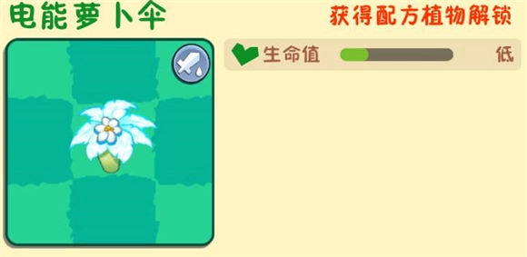 电能萝卜伞:由萝卜伞与脉冲黄桃合成而来,被该伞弹开的僵尸会陷入麻痹状态。