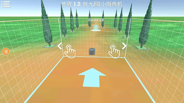 双指滑动屏幕控制视角远近。