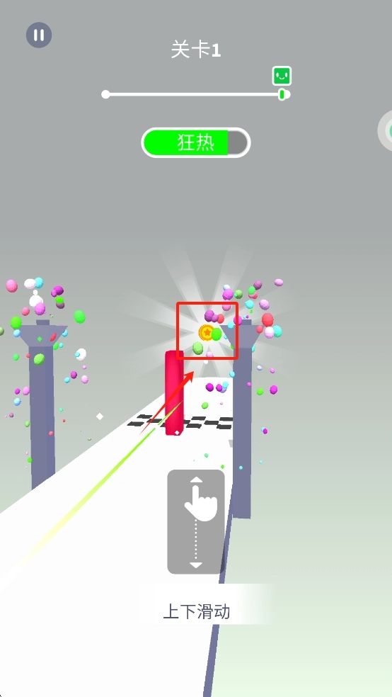 当处于狂热模式时,快速滑动屏幕,使积木顺利穿过泡泡所在的区域。