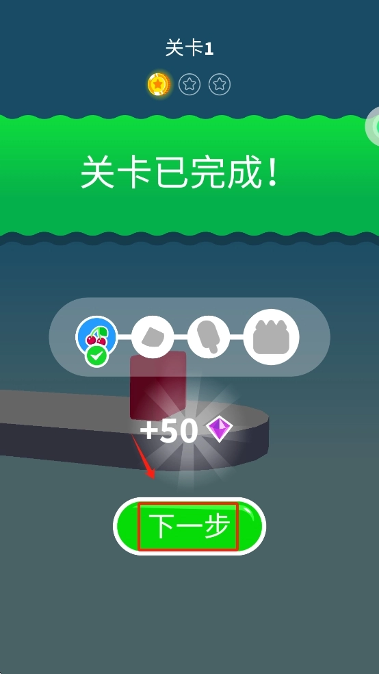 当关卡完成后,点击“下一步”按钮,即可领取奖励并继续进行游戏。