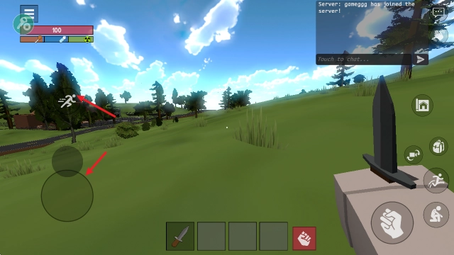 进入游戏后,和普通沙盒游戏的操作方式类似,玩家可以借助摇杆来控制角色移动,界面上方还设有快速奔跑的功能按钮。