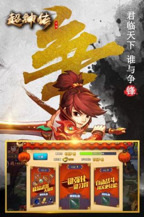 超神传是一款回合制的三国题材游戏,主打“君临天下谁与争锋”的核心体验。在这里,你可以和更多玩家一同并肩作战,体验全新的战斗模式——这种绝对新颖的战斗方式,能让你仿佛回归现实战场,一步步成长为最强的战斗家!