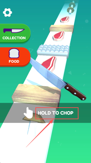 1、收集食材:进入COLLECTION FOOD界面后,长按HOLD TO CHOP按钮即可开始切菜。