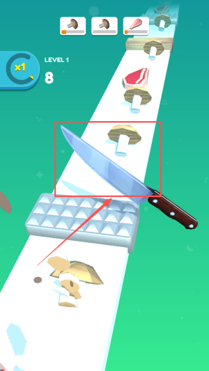 2、精准把控切割过程:在屏幕上操控刀具切割食材,碰到木头时立即停下,防止出错,保证切割动作连贯流畅。