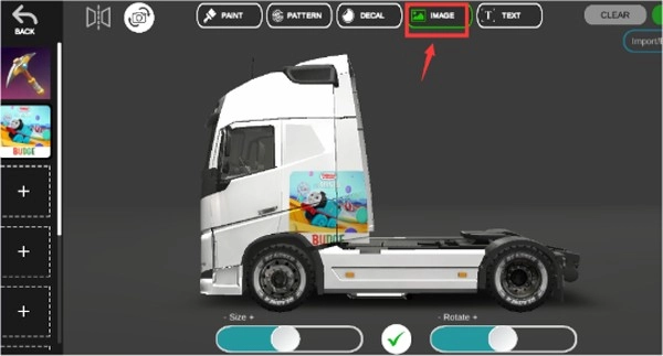 2、你还能自由定制卡车的外观,给它涂上各种彰显个性的涂鸦元素,甚至可以导入本地图片来进行涂装呢!