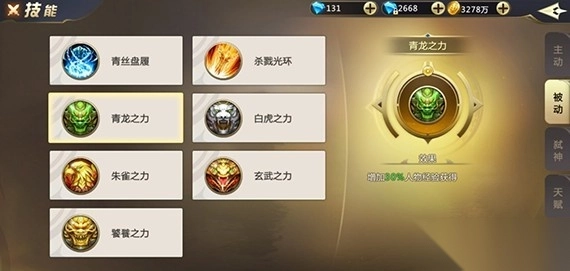 被动技能“青龙之力”,能够提升角色30%的经验获取效率。