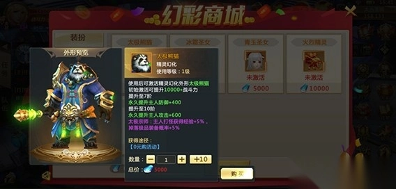 开服活动里的0元购,太极熊猫能永久增加打怪经验5%。