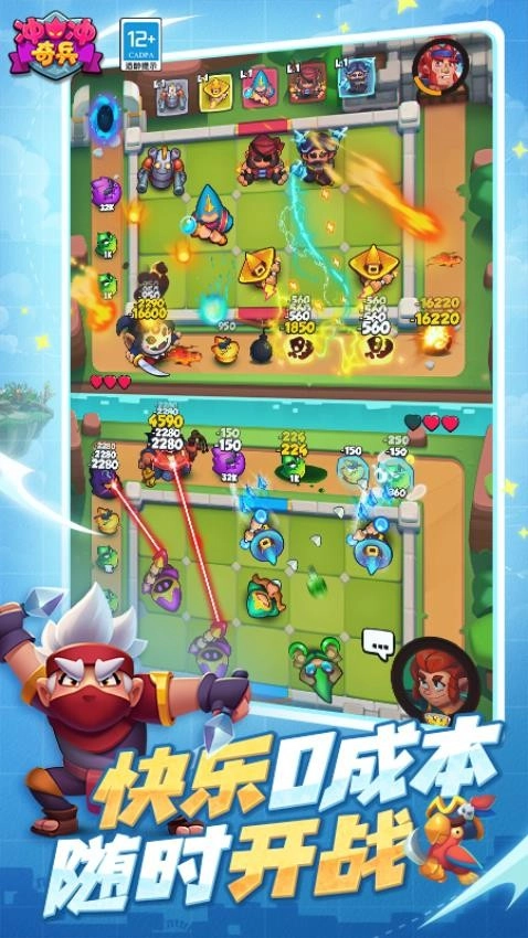 《冲冲奇兵》这款策略游戏融合了塔防玩法与卡牌收集元素。其故事舞台搭建在魔法与科技相互交融的兰德姆岛奇幻世界,岛上的居民分属森林联盟、科技起源协会、魔法协会、光之国以及黑暗领域这五个阵营。玩家能够自主搭配出自己喜欢的队伍,通过守护大门来赢得游戏的胜利。