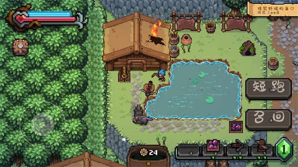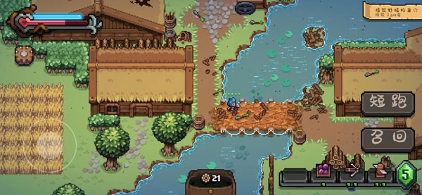 一开始看到像素风格还以为是开放自由玩法,结果体验下来全程都是剧情驱动模式,得跟着剧情推进走。之前去过的地图,之后就没法再进去了;而且在地图里走到特定位置就会刷出怪物,打完怪后地图就空了,也别想什么探索收集之类的玩法。目前能互动的只有陶罐、杂草和稻草,破坏它们有概率掉落类似齿轮的物品,暂时还不清楚用途,不过根据最后剧情推测,可能是用来给炮塔升级的。