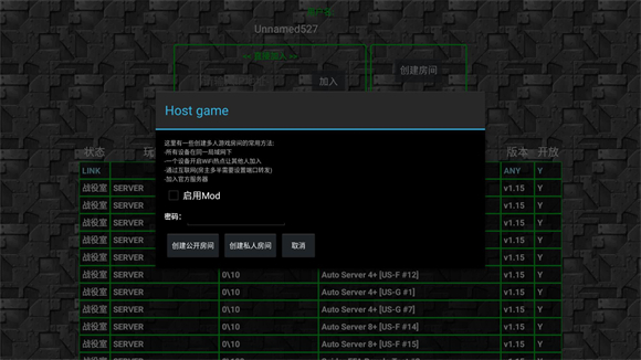 在联机界面,你既可以直接输入IP地址加入房间,也能从下方的服务器列表中挑选房间进入游戏。需要注意的是,只有版本号与你相同且开放状态显示为Y的房间,才能够成功加入。