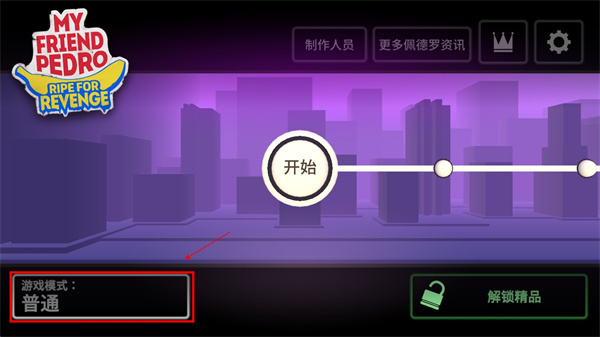 1、打开我的朋友佩德罗手机版后,第一步是选择游戏模式,接着点击开始按钮进入游戏;