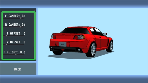 4、通过滑动滑块,即可对轮胎外倾角、偏移量以及车身高度进行调整。