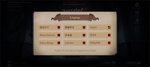 1、先进入游戏,等加载到主页面后,找到右下角的“English”字样,点击它就能切换语言。