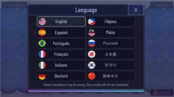 1、打开正版的加查通用游戏,点击Language选项进入语言切换界面;