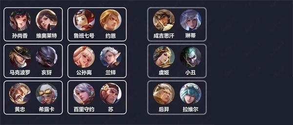 10、孙尚香-维奥莱特 鲁班七号-约恩 成吉思汗-琳蒂