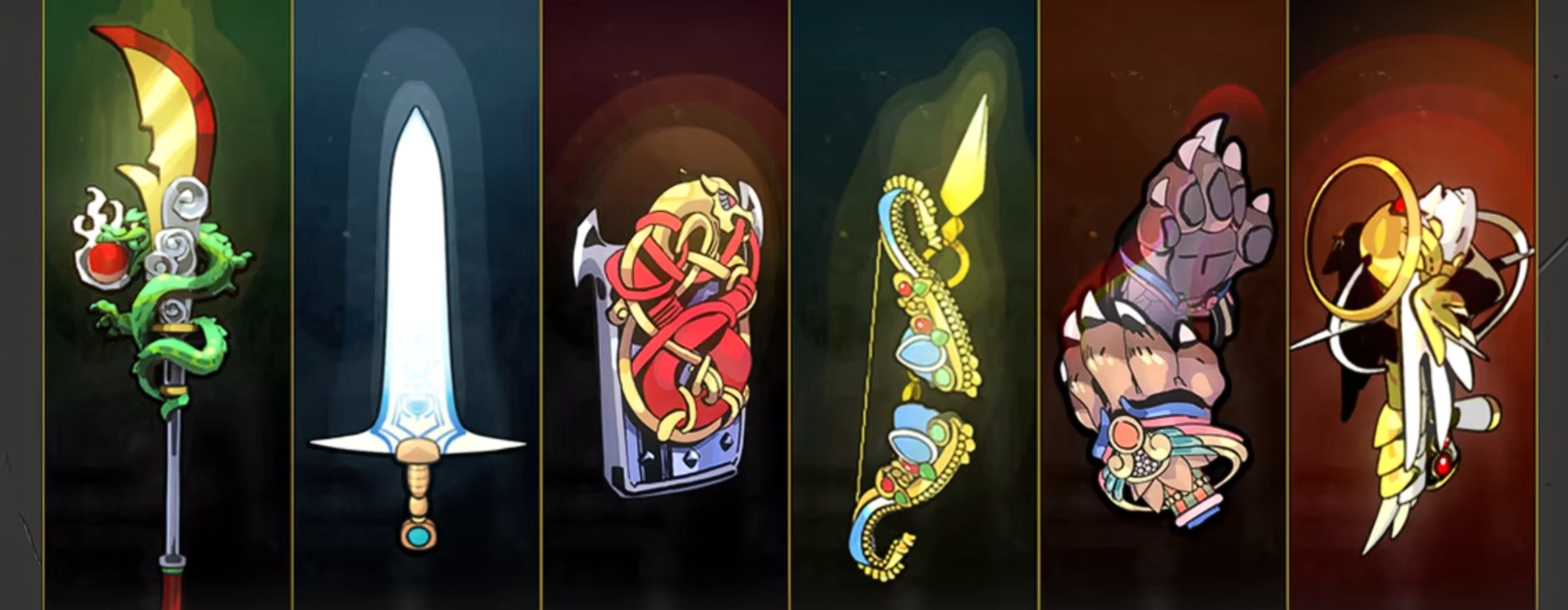 我们先聊聊武器系统。游戏里共有剑、矛、盾、弓、拳套和炮这6种武器类型。随着关卡的推进,我们不仅能解锁更多武器种类,还能解锁同一武器类型下的不同形态——每种武器都有4种基础形态。不过,除了初始自带的剑之外,其他武器都得用钥匙解锁;而每种形态的解锁和升级,都需要消耗泰坦之血。另外,每种武器还藏着特殊的隐藏形态,得达成特定条件才能解锁哦。