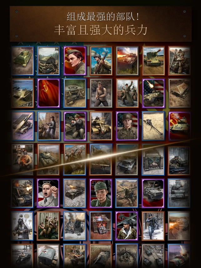 多样兵种的兵力组合成部队,以争取胜利。2、玩家可以在同盟国及轴心国阵营中自由选择。