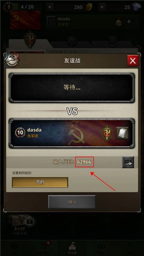 把生成的房间码分享给好友,等好友进入游戏房间后,点击下方的【开启】按钮就可以了。