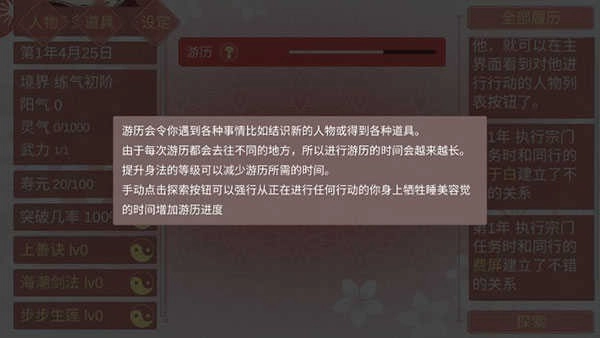 进入游戏界面之后,会自动进行游力,遇见人和事;