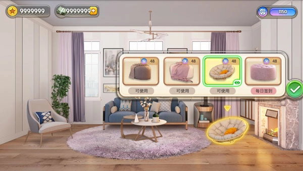 在这里玩家只需点击想要更换的家具,再挑选心仪的款式就能完成替换,并且每次更换都会提升空间的温馨度。
