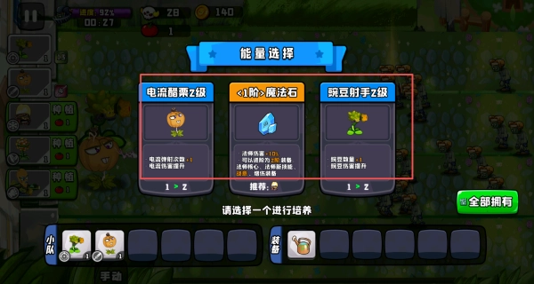 通过积累能量能够触发特殊技能,像让全场僵尸瞬间被冻结,或是提升所有植物的攻击力和射程。