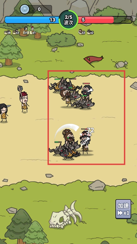 在战斗中指挥小兵作战,消灭敌人,推进波次进程。