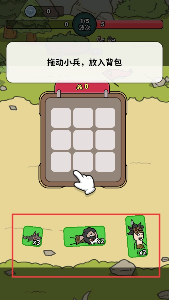 拖动小兵放入背包,组建专属战斗队伍,为迎战敌人做好准备。