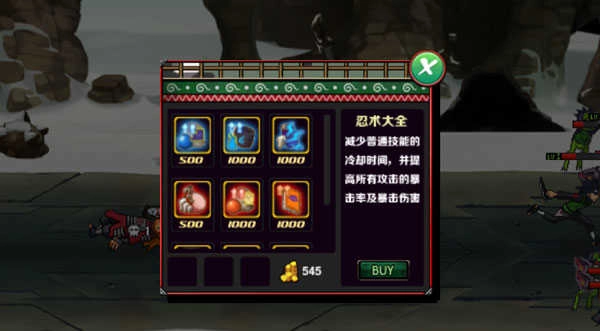 开局会获得50枚金币,在对局中消灭敌方忍者、小兵和防御塔都能获取金币,对局结束后积累的金币可用于解锁奥义技能。