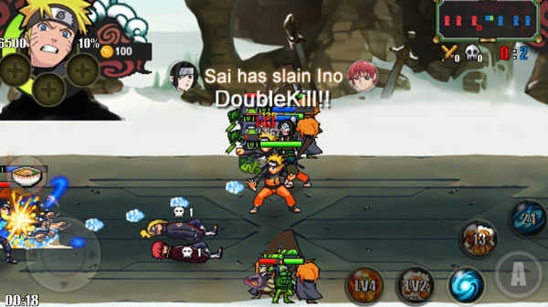 英雄的两个奥义技能会在当局战斗内的2级和4级时解锁。释放奥义技能需要通过承受伤害来积攒查克拉(也就是大家常说的怒气值)。另外,战斗界面里还有回血技能,这个技能不用消耗蓝量,但会消耗当局战斗中的金币。
