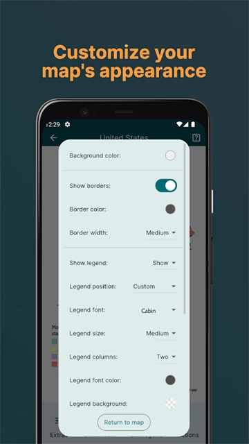 你还可以调整地图的背景或边框颜色,隐藏某些元素,以及设置图例的样式等。