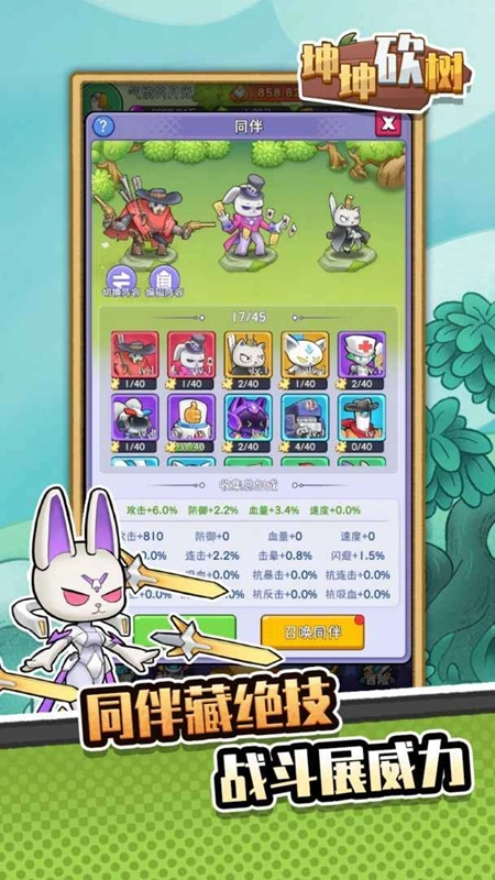技能成长系统:在游戏推进过程中,玩家能借助完成各类任务与积累经验值,来增强坤坤的各项能力属性,像是力量、敏捷、耐力等,从而让砍树环节变得更为轻松顺畅。