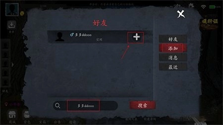 打开多人界面后,找到并点击“添加”按钮,接着在界面下方的搜索框里输入好友的名字来执行搜索操作,当搜索结果显示出目标好友后,点击其对应的“+”图标完成添加流程。