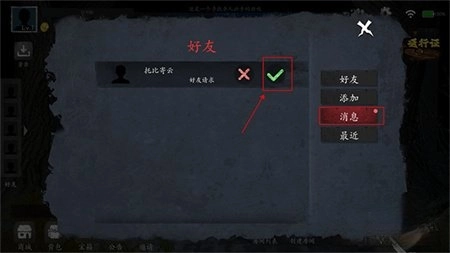 好友接收到邀请后,点击绿色的勾号以同意邀请。
