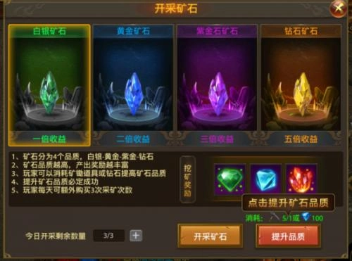玩家可以消耗矿锄道具或钻石提升矿石品质