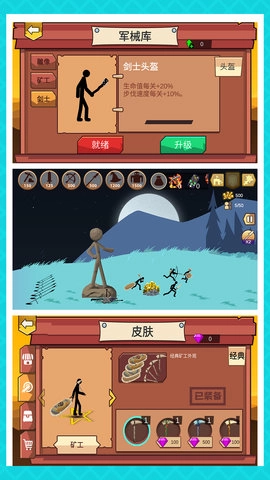 玩家能够招募步兵、骑兵、弓箭手等不同类型的火柴人士兵。每一种士兵都具备独特的特点与能力,玩家得依据战争的实际需求,对士兵进行合理的搭配与部署,这样才有可能赢得胜利。此外,除了招募士兵之外,玩家还可以修建城墙、箭塔之类的各类设施,以此来提升自身的防御水平。